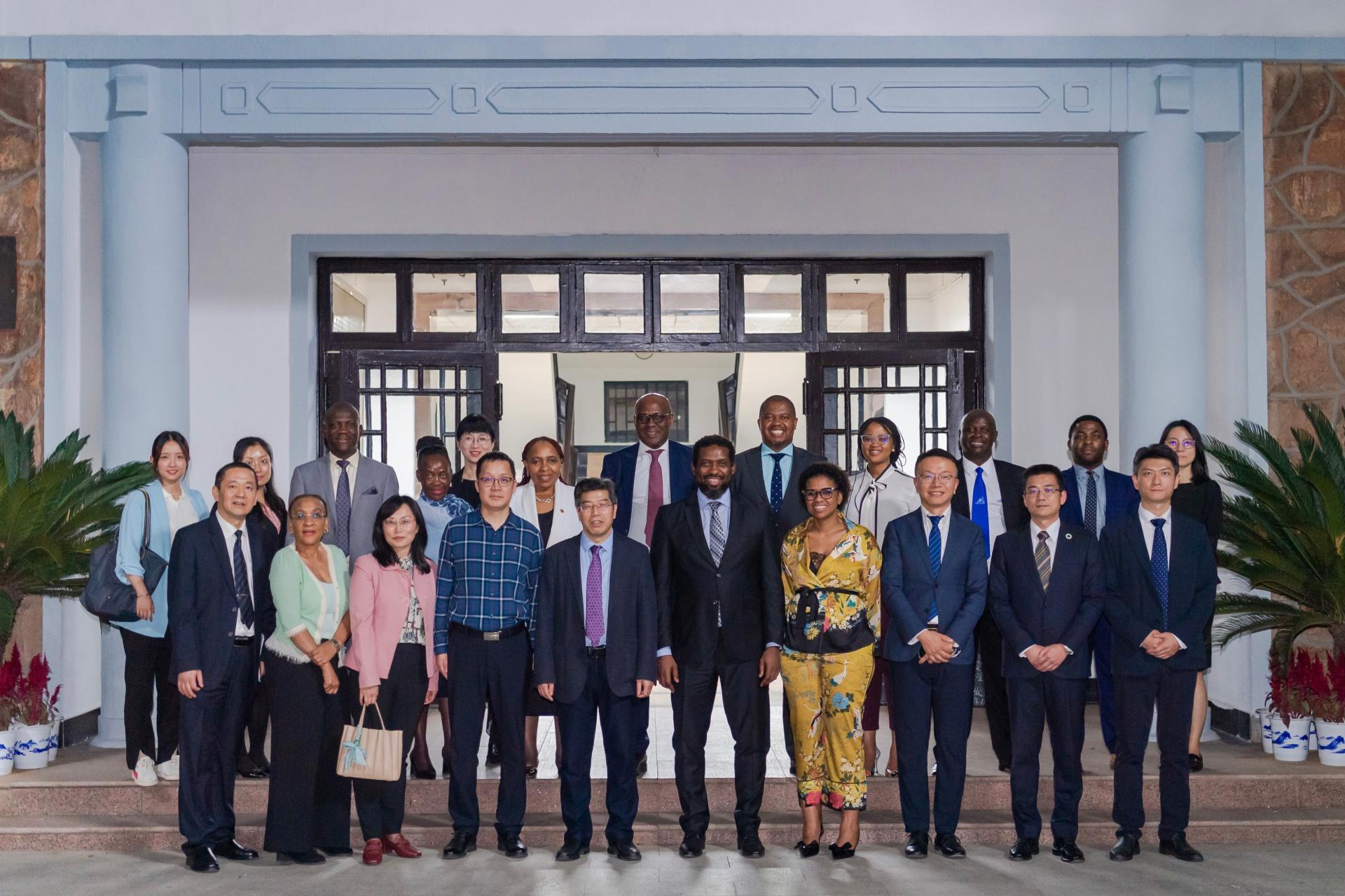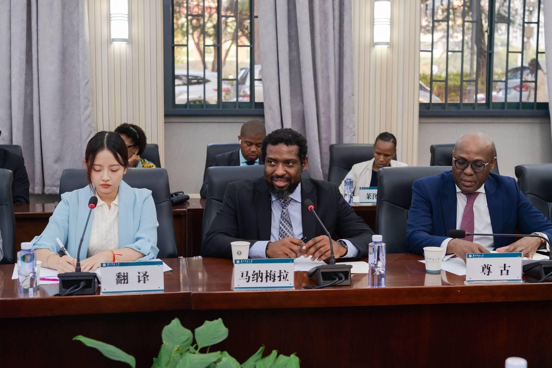彭双阶对南非高等教育代表团的到访表示欢迎。他介绍了学校的历史沿革与办学发展情况,特别是我校在信息技术与教育的深度融合方面取得的突出成就。他表示,学校始终坚持开放化办学,积极构建面向全球的国际合作伙伴关系网络,为促进中外人文交流做出了积极贡献。学校积极响应“一带一路”倡议,多年来持续招收南非等国留学生,并在中国驻南非大使馆和南非基础教育部的大力支持下,于2022年承办了南非中小学骨干教师能力建设高级培训班,面向南非中小学优秀数学教师和基础教育部学科顾问、教学专家及官员等学员开展专业培训,收获广泛好评。期待双方以本次来访交流为契机,在共建“一带一路”倡议提出十周年之际,能够进一步深入交流,在国际中文教育、人才培养、学术交流等方面开展务实合作。